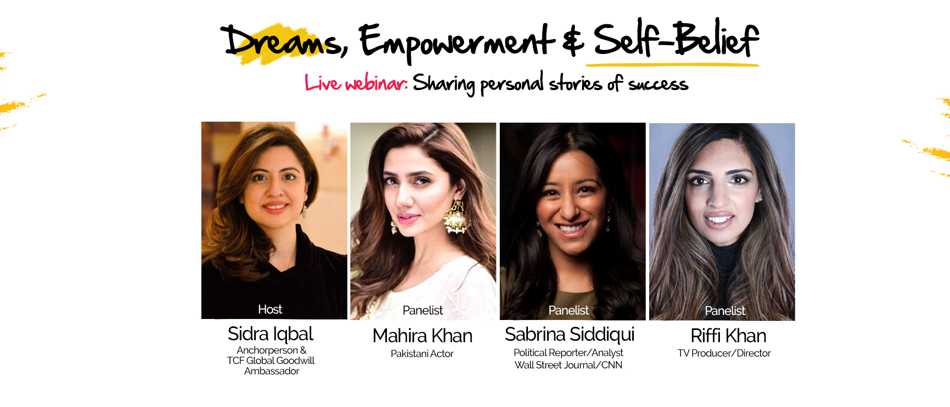 Featuring acclaimed Pakistani actress, Mahira Khan, TV director/producer, Riffi Khan, and political reporter, Sabrina Siddiqui, this inspiring event will be hosted by TCF Goodwill Ambassador, Sidra Iqbal.