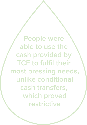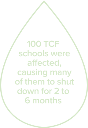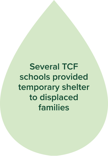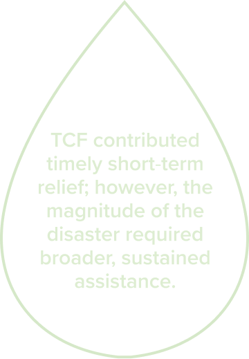 1.Emergency support such as cash transfers and the use of schools as temporary shelters by TCF provided timely relief for affected communities.