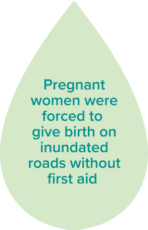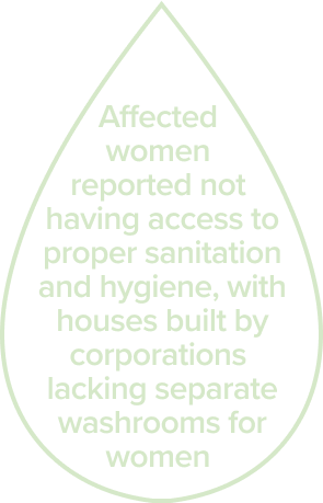 “We were forced to relieve ourselves in the open. There was no privacy. [We] would make a shield of women and relieve ourselves during the floods. There are still no bathrooms. Even before the floods, there were no bathrooms in the community. We don’t have the money to build them.”