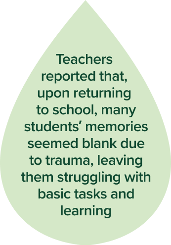 Lingering trauma from the floods remains largely unaddressed. In order to aid and support children in rebuilding lives for long term recovery, schools can: