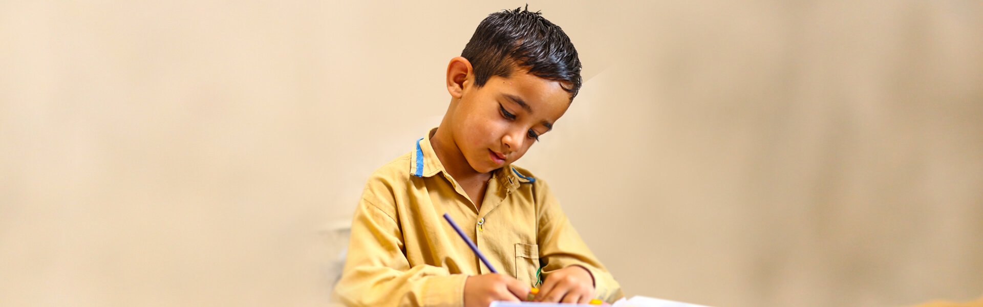 Mehtab has rote learned his name, just as he is expected to rote memorize his textbooks.
